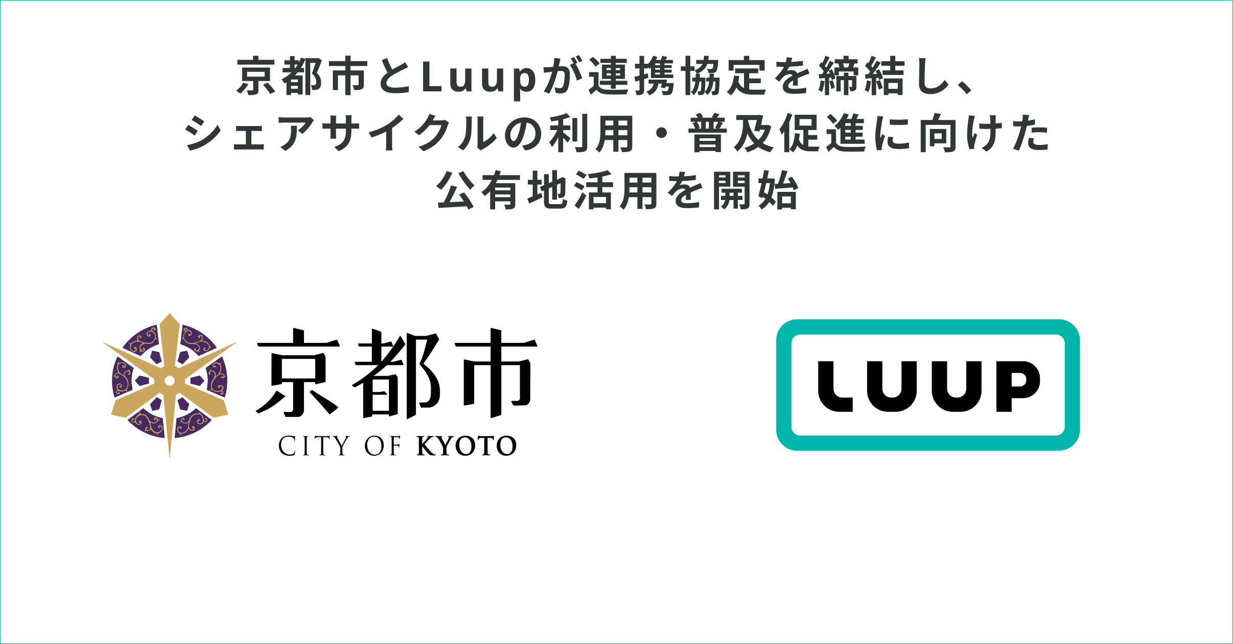 株式会社Luup(本社:東京都千代田区、代表取締役社長兼CEO:岡井大輝、以下「Luup」)は、京都市と連携協定を2023年1月31日(火)に締結し、安心・安全で利便性の高いシェアサイクルの利用環境づくりに取り組むと共に、京都市が保有する10箇所の公有地に、電動マイクロモビリティのシェアリングサービス「LUUP」のポートを導入することをお知らせします(※1)。