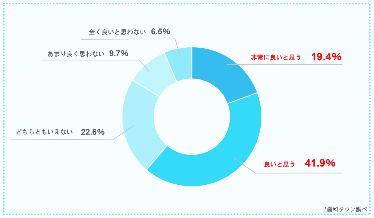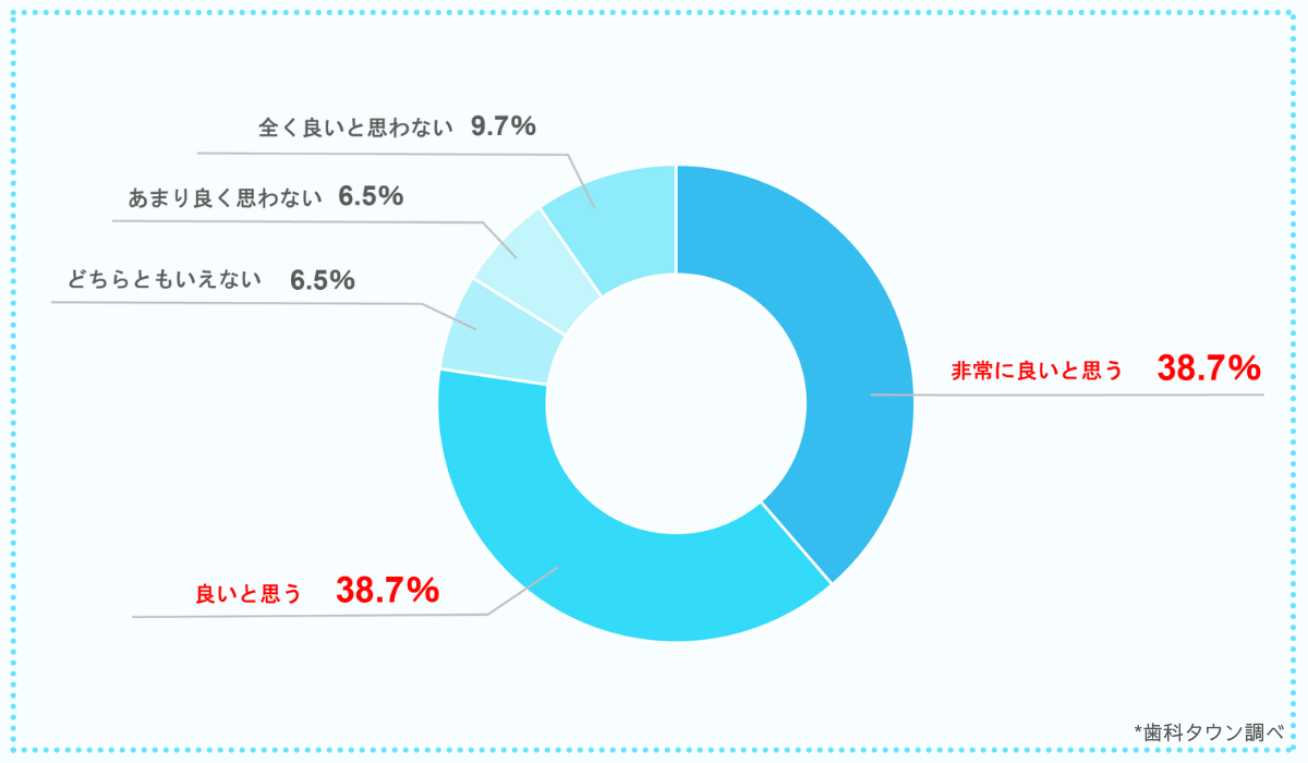 この制度について、「非常に良いと思う」・「良いと思う」の回答を合わせると77%にも及ぶ結果になりました。大多数の歯科医師が、好意的に受け止めているようです。