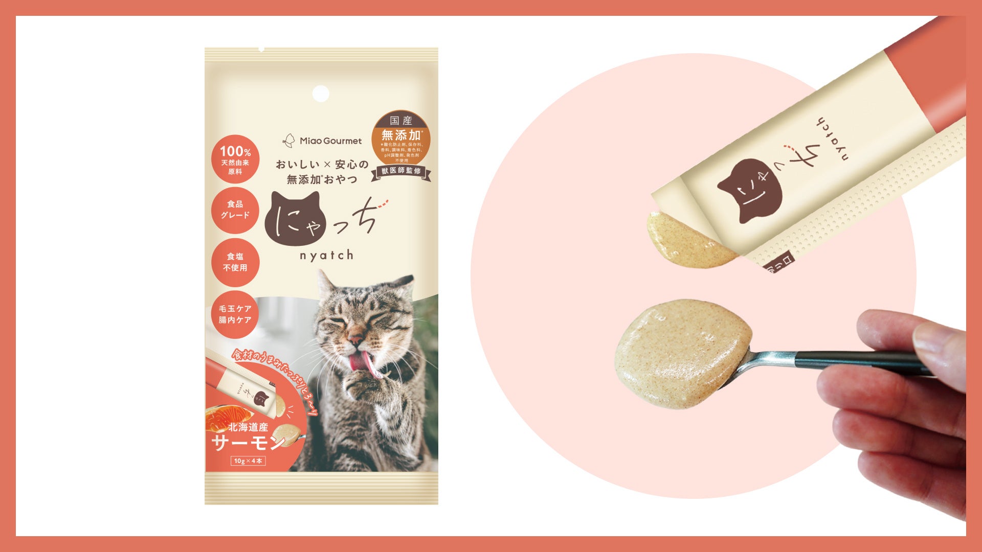 安心して愛猫にあげてほしいから。食塩不使用、100%天然由来原料の無添加ピューレ「にゃっち」にサーモン味が新登場