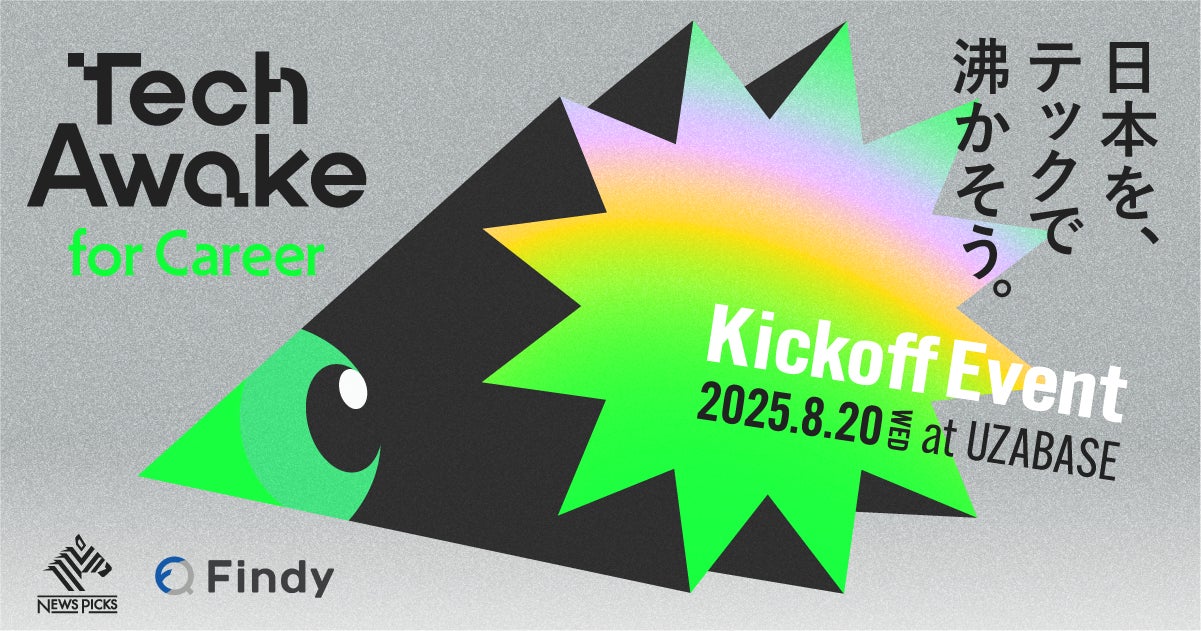 エンジニアプラットフォームを提供するファインディ株式会社(東京都品川区、代表取締役:山田 裕一朗、以下「当社」)は、株式会社ユーザベース(東京都千代田区、代表者 稲垣裕介)が運営する国内最大級の経済ニュースプラットフォーム「NewsPicks」に特別協力し、エンジニアをはじめとしたテック人材のさらなる可能性を拓くプロジェクト「TechAwake for Career」を始動することを発表いたします。本プロジェクトは、「日本を、テックで沸かそう。」をコンセプトに、テック人材が事業視点を持ちながら大企業のテックカンパニー化を牽引する新たな挑戦機会を提示することで、次世代のテックリーダーへと成長する道筋を示してまいります。ユーザベースオフィス(東京 丸の内) にて、2025年8月20日(水)にキックオフイベント、11月15日(土)には大規模キャリアイベントの開催と「NewsPicks」上での特集企画を予定しています。