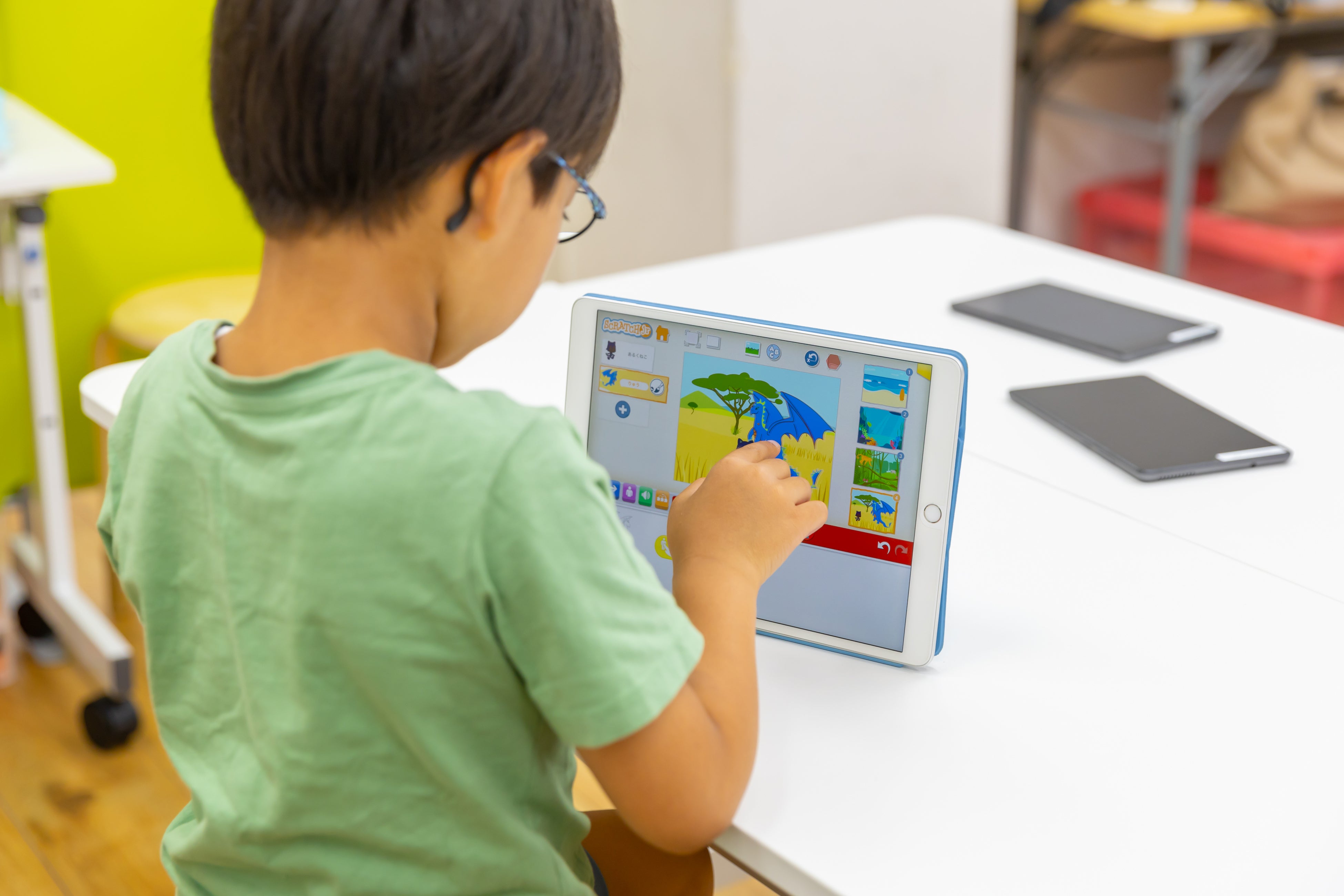 プログラミングアプリ「ScratchJr」を使用し、バグを見つけて正しく修正し、依頼者から給与を受け取るという流れを通じて、「働いてお金を得る」ということを体験します。