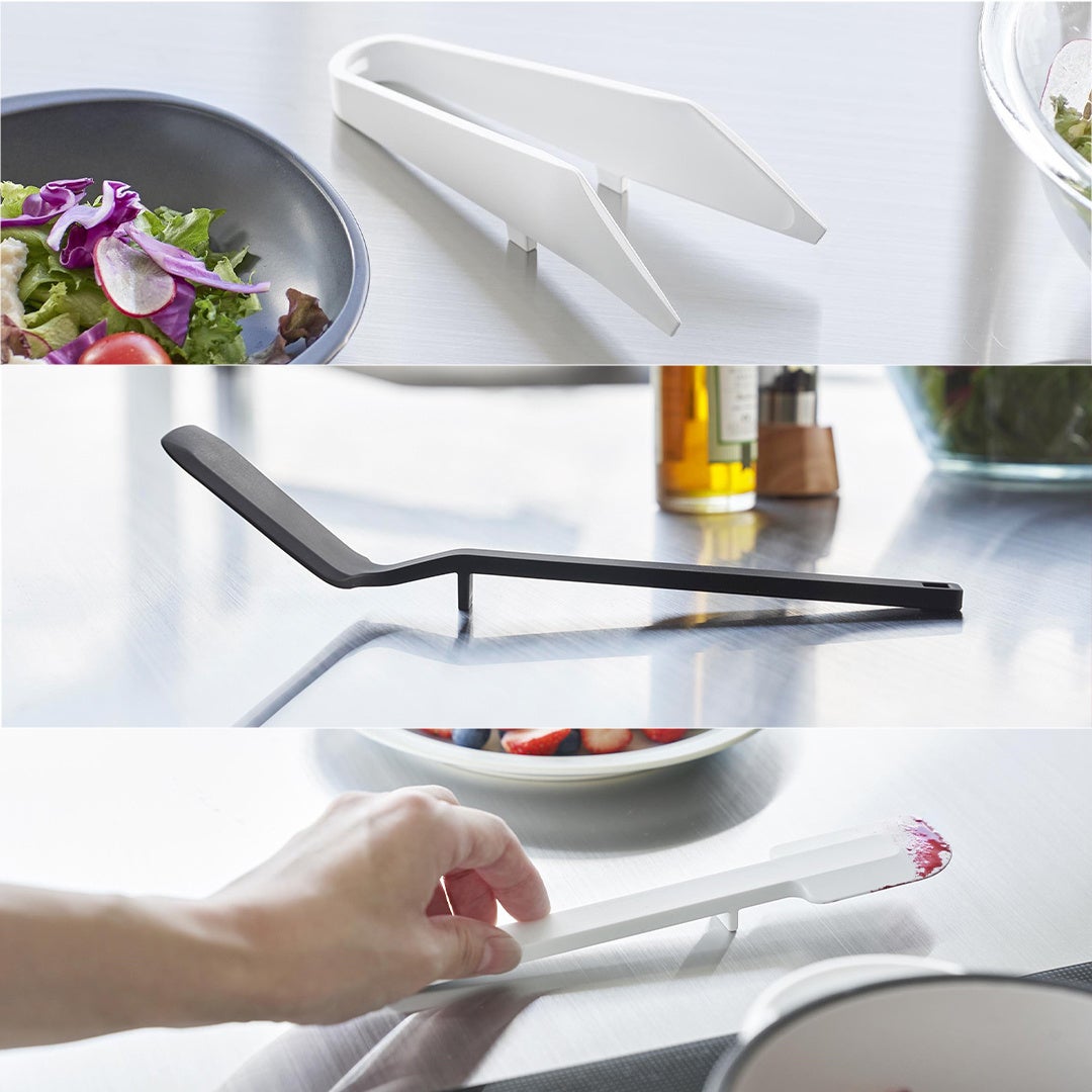 シリコーン製で滑りにくく熱に強い、コンパクトで使いやすいサイズのトング・フライ返し・スパチュラ。