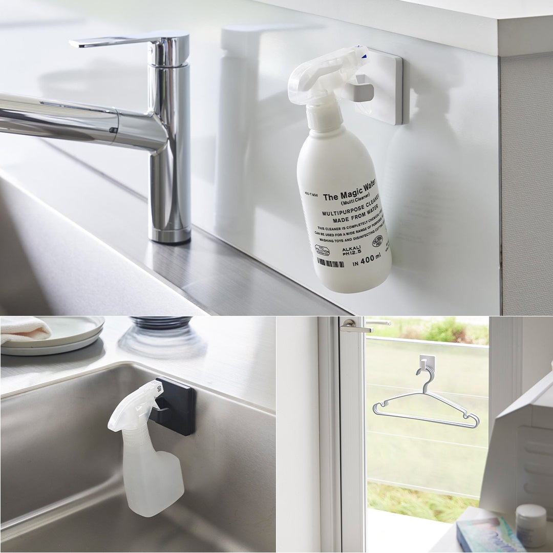 キッチンやシンク中にスプレーボトルを浮かせて収納できるフック。