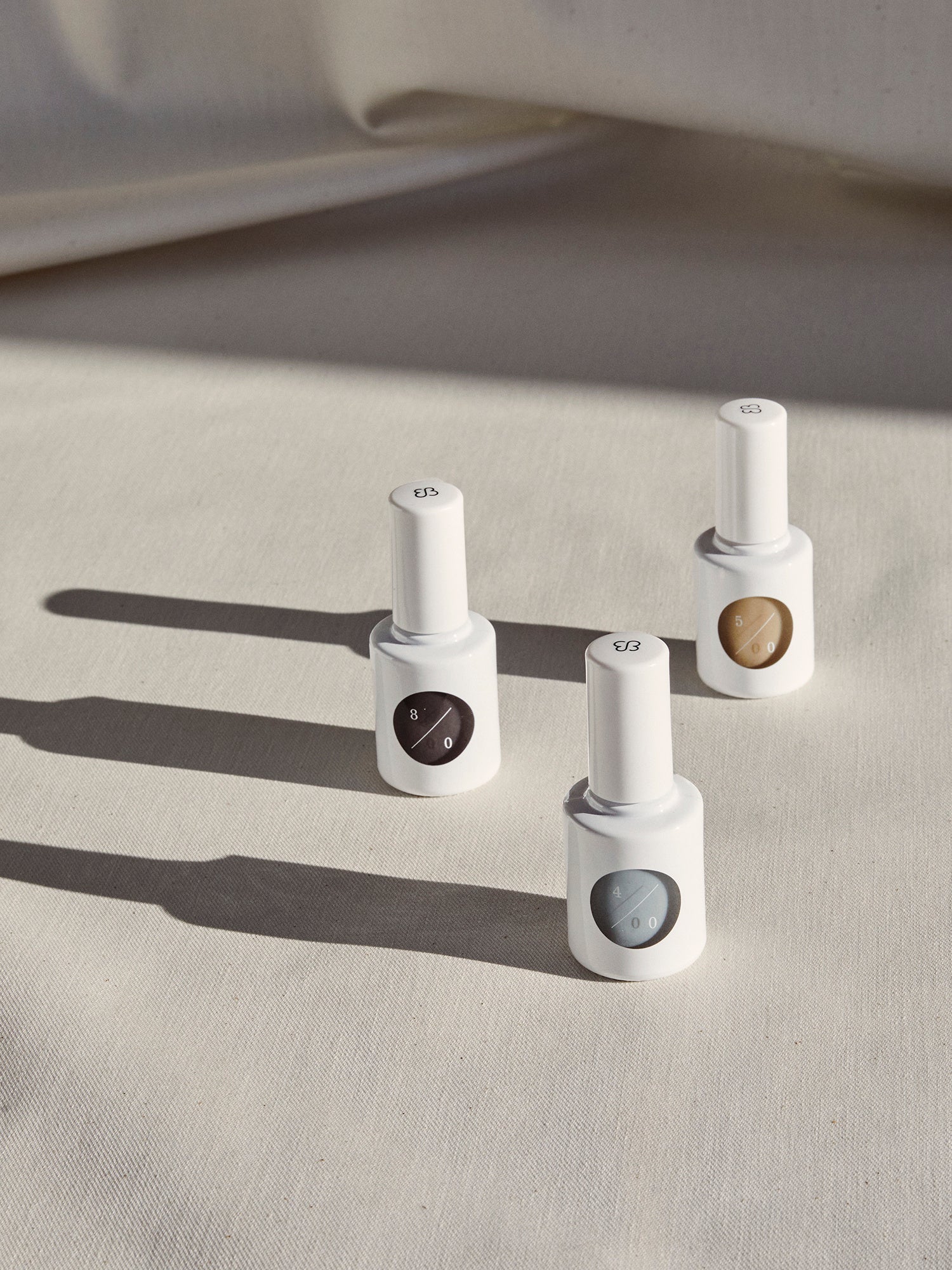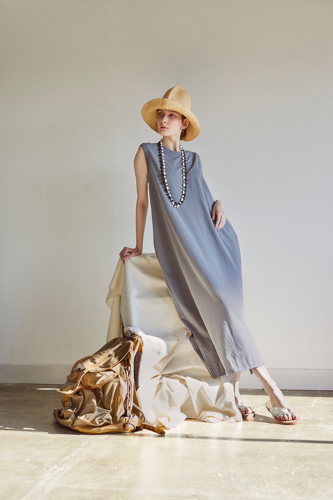 ネイルカラーをテキスタイルで表現するという初めての試みに試作の確認を重ね、uka color base coat zeroのカラーが実現。程よい厚みでさらっとした肌触りのTシャツと、スピンコットン100%のミニ裏毛のドレスにのせました。上質なコットンジャージーの気持ちよさをお楽しみください。