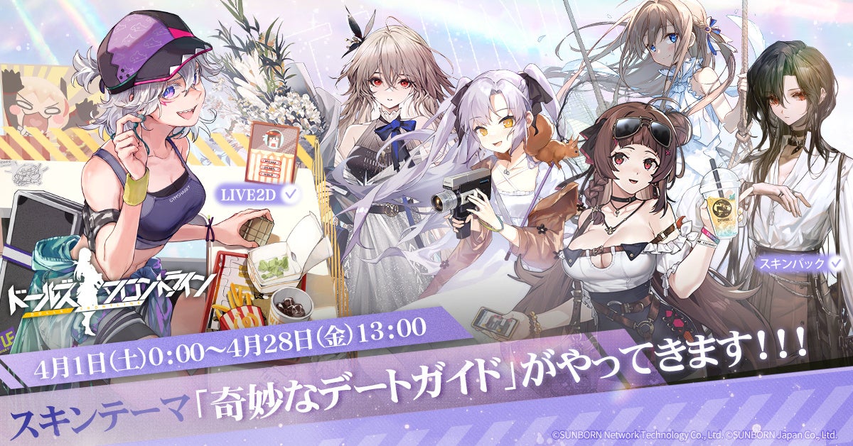 株式会社サンボーンジャパンは、スマホ向け戦略型シミュレーションゲーム『ドールズフロントライン(以下、「ドルフロ」)』において、4月1日(土)0時より追加されるデート服の新作スキンテーマ「奇妙なデートガイド」の一部を先行して公開いたします。