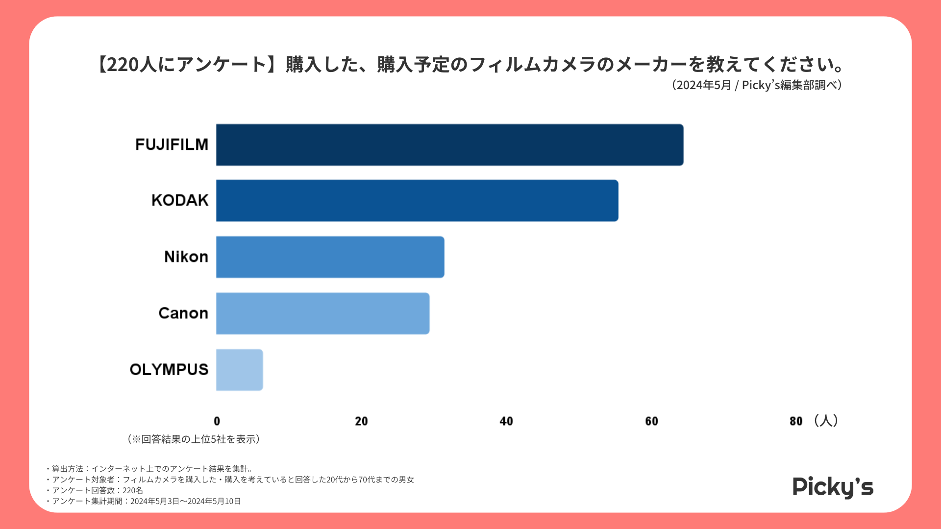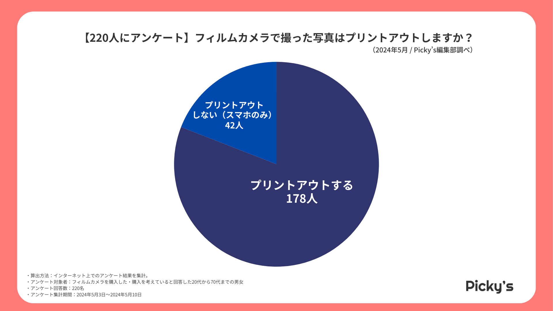 「Picky’s」は、インターネットショッピングにおいて、購入前に試せない・選ぶべきものがわからないという課題の解決を目標に、あらゆる商品のおすすめランキングや検証レビューを紹介するサイトです。このたびPicky’s(https://rentry.jp/)では、フィルムカメラについてインターネット上でアンケート調査を行いましたので発表いたします。