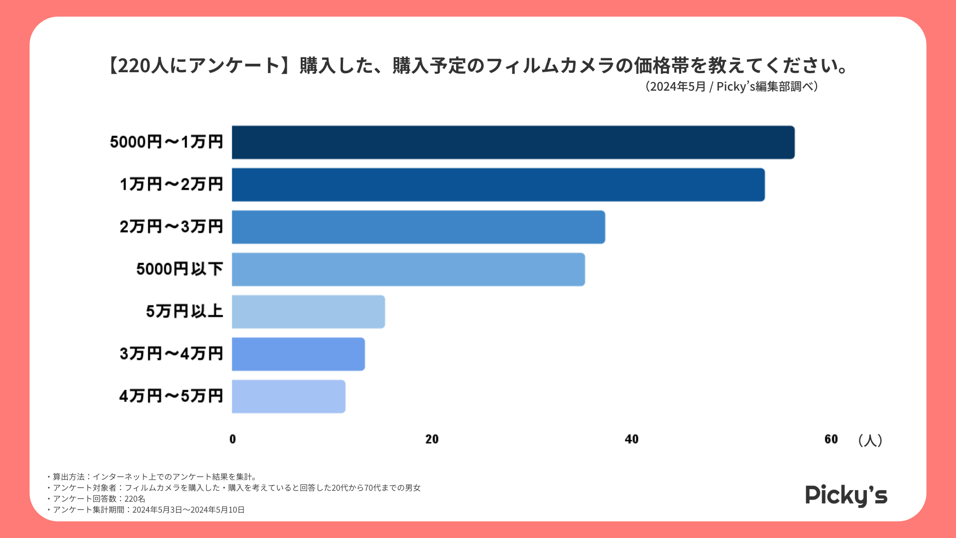 購入した、購入予定のフィルムカメラの価格帯を教えてください。