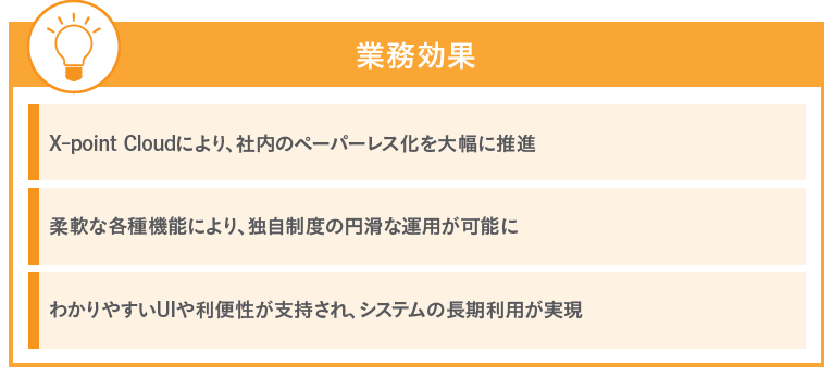 フルリモート体制となる前の2009年に、シンプルでわかりやすい画面や操作性、Excelのデザインをそのままシステム上で再現できるフォーム作成機能を決め手にオンプレミス版のX-pointを導入いただき、ほぼ100%の申請業務ペーパーレス化を実現されました。2021年にはクラウド版であるX-point Cloudへリプレイスしていただき、長期に渡って製品をご活用いただいています。