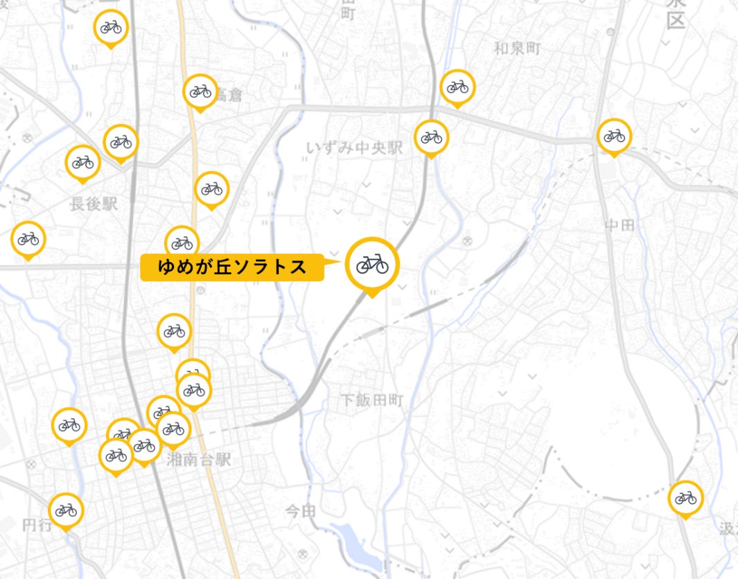今回、「ゆめが丘ソラトス」の敷地を活用したシェアサイクル「ダイチャリ」を展開することにより、地域コミュニティの一端を担う交通網を拡充し、お客様や地域の方々が気軽に地域観光を楽しめる交通手段を提供します。ゆめが丘の隣駅であり、複数路線が乗り入れる湘南台駅周辺や横浜市内に加え、サイクリングロードで行ける湘南・江の島エリアには、既に複数の「HELLO CYCLING」ステーションが設置されているため、それらのステーションを活用したシェアサイクルと公共交通機関を組み合わせた移動も楽しむことができます。