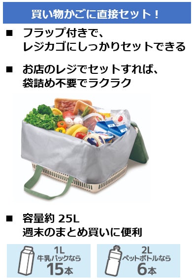 レジカゴにしっかりセットできる、容量約25Lの保冷買い物カゴ用バッグがリニューアル!サーモス独自の5層断熱構造の高い保冷力!週末のまとめ買いに便利