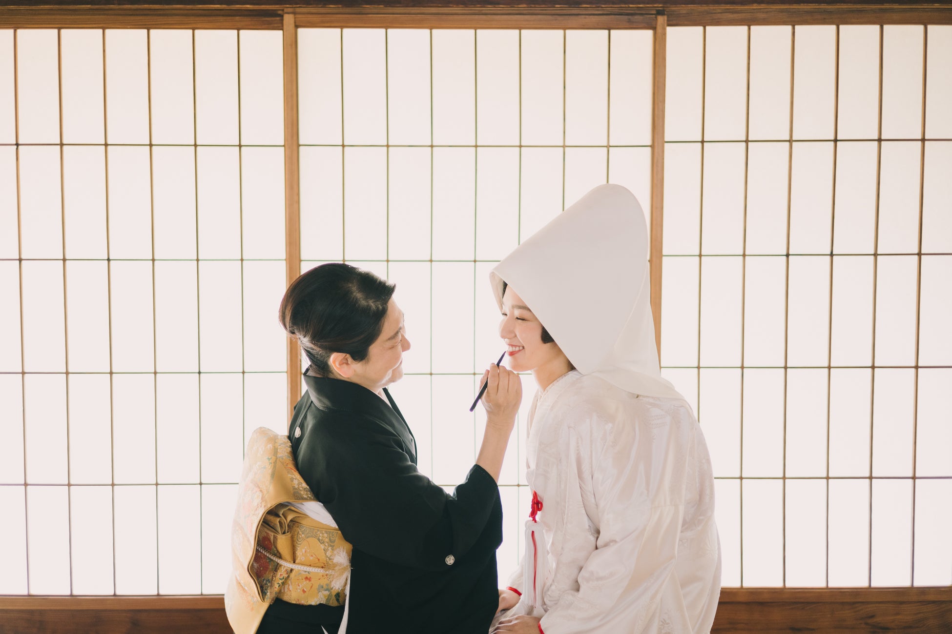 1)お仕度 お着物に身を包み特別な一日を迎える準備。