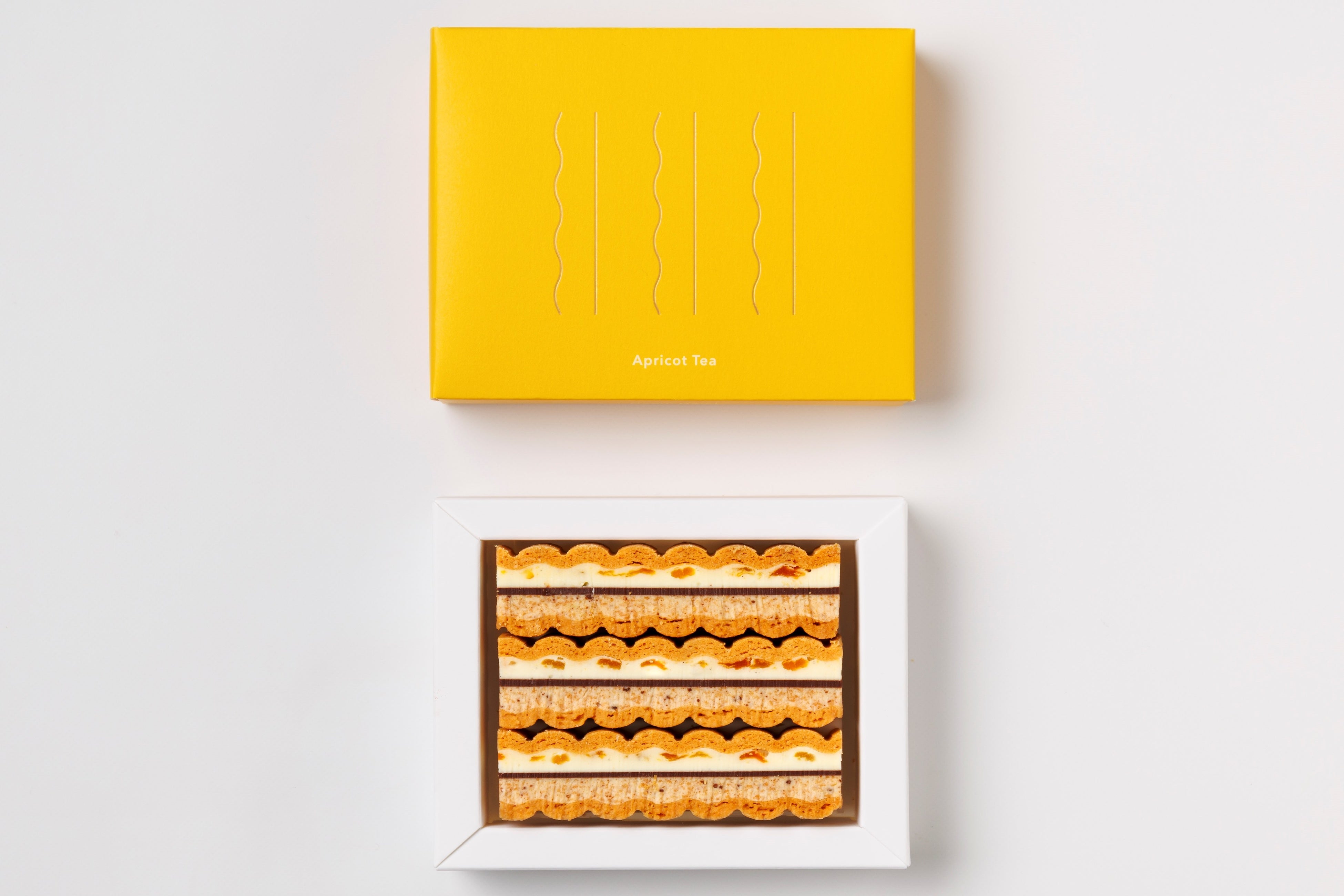 香り高い紅茶クリームと、セミドライのアプリコットを散りばめたアプリコットクリームと、こだわりのビーントゥバーチョコレートをサクサクのバニラサブレでサンド。アプリコットの甘酸っぱさとふくよかな紅茶の香りが、午後のティータイムにピッタリです。