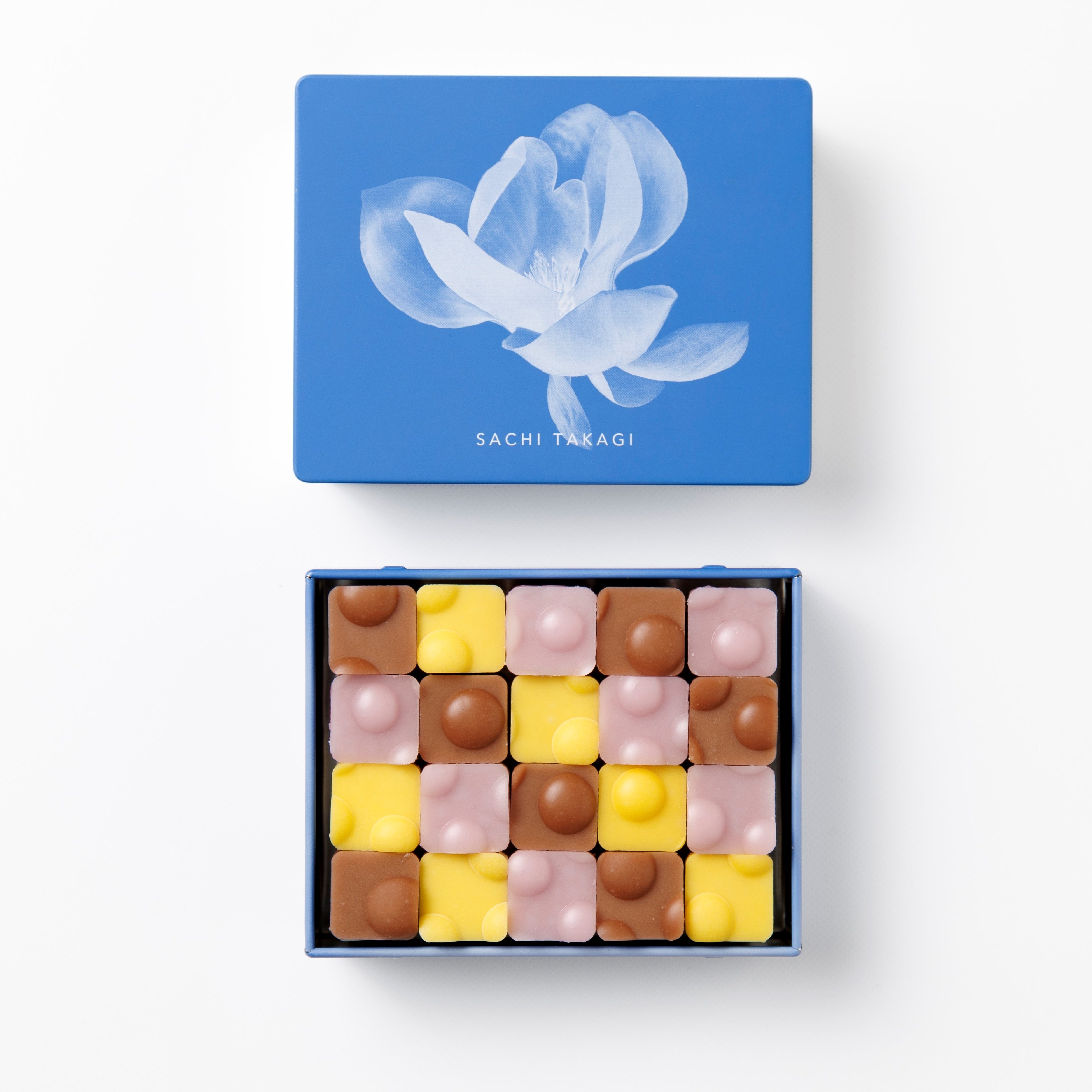 今年のバレンタインから、初めて販売されるクッキー缶。ビーントゥバーチョコレートのカカオ感がしっかり感じられるチョコレート味から、レモンやストロベリーなど、Sachi Takagiのコンセプトのように様々な植物が主役になる味の構成に仕上げました。