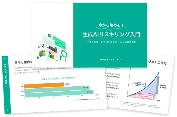 企業向け学習管理システム(LMS)およびeラーニングコンテンツ、人材育成コンサルティング等を提供する株式会社ライトワークス(本社:東京都千代田区、代表取締役:江口夏郎、以下ライトワークス)は、多くの日本企業が直面している「AI活用の定着不全」と「セキュリティリスク」の解決策をまとめたホワイトペーパー『生成AIリスキリング入門 ~リスク管理と利活用を両立させる人材育成戦略~』を公開しました。