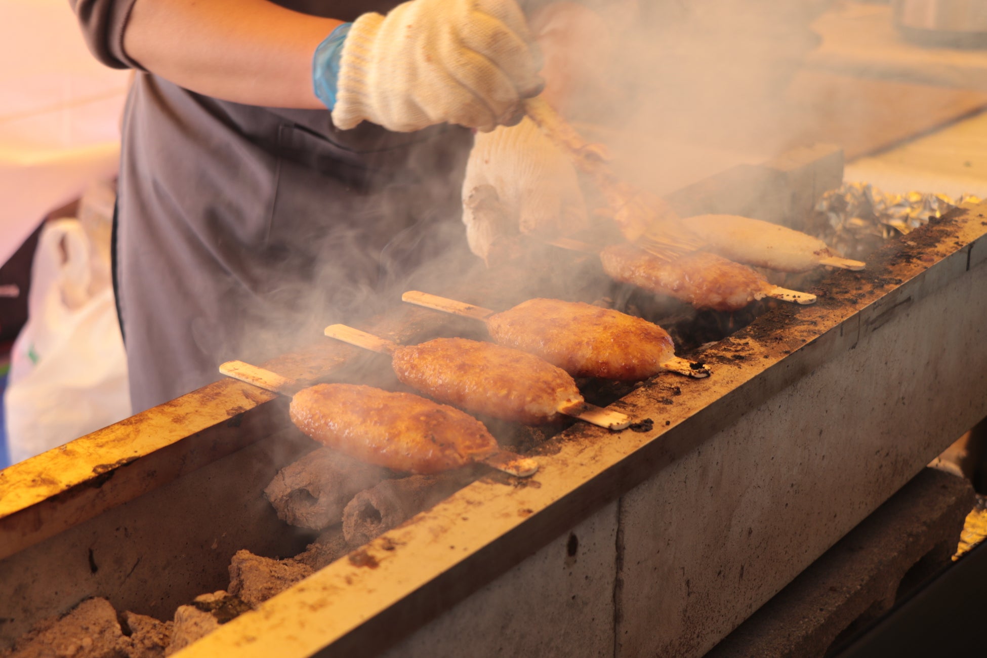 昨年に引き続き出店していただいたあわら市で唯一のれんこん栽培を行う農家「グリーンファーム角屋」さんの五平餅。れんこん農家の五平餅?!れんこんとおもち、全く関係がないようにも思えるこの二つ。実は、れんこんだけでなくお米など栽培しており、自家製青大豆味噌のくるみダレを使い、炭火でこんがりと焼き上げた五平餅は来客された方々を虜にしていました。私も匂いにつられ、向かったころにはすでに完売していました。流石です。