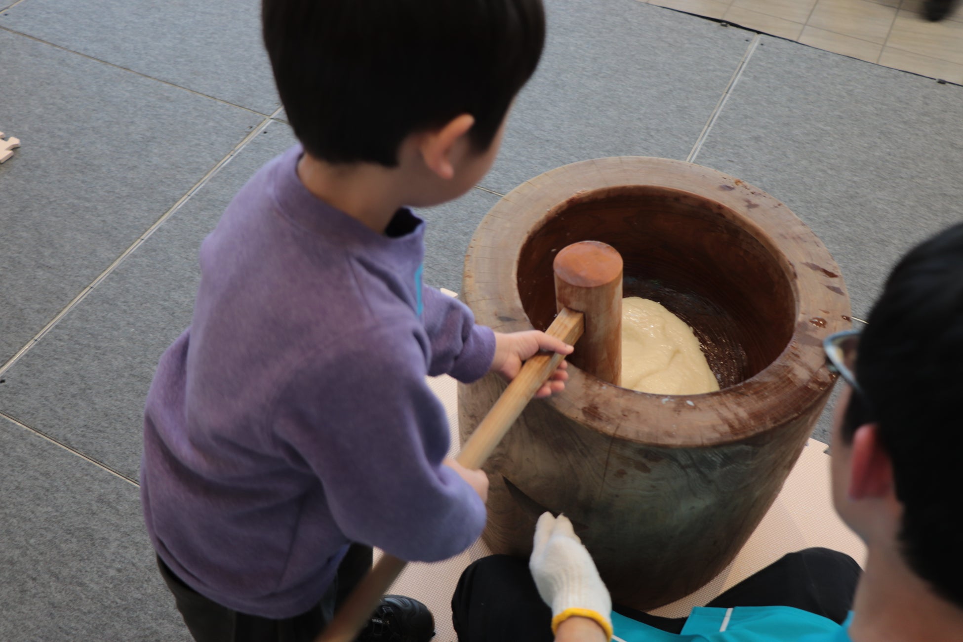 小学生までのお子さんを対象に子どももちつき体験会が行われました。体験会が始まる前から、たくさんの親子連れが並び、もちつき体験を楽しみにしていました。お餅をテーマにしたイベントではめずらしいお客さん参加型のもちもち体験イベントに参加された子どもや保護者の方だけでなく、その場にいた来場者までもが、杵を使い楽しそうにお餅をつく子どもの様子に「がんばれ~!」とつい応援したくなりました。私も、もちつきを久しぶりしてみたくなりました。次回のもちもちランドでは、参加できることをお願いしてみようかなぁと思ってます笑笑