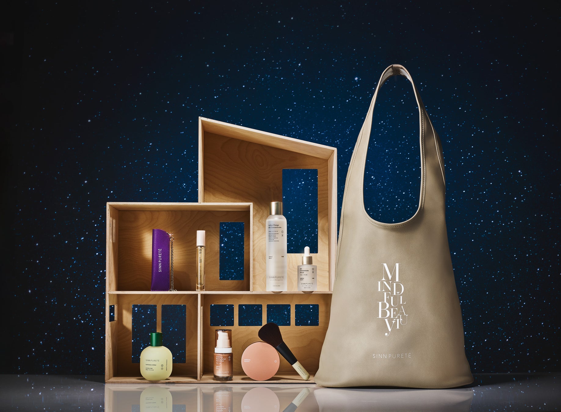 香りではじめるマインドフルビューティーの一連のステップを体感できるセット。フレグランスと大人気のヒトデ配合スキンケアをセットに。A4サイズ対応のヴィーガンレザートートバッグ付き。