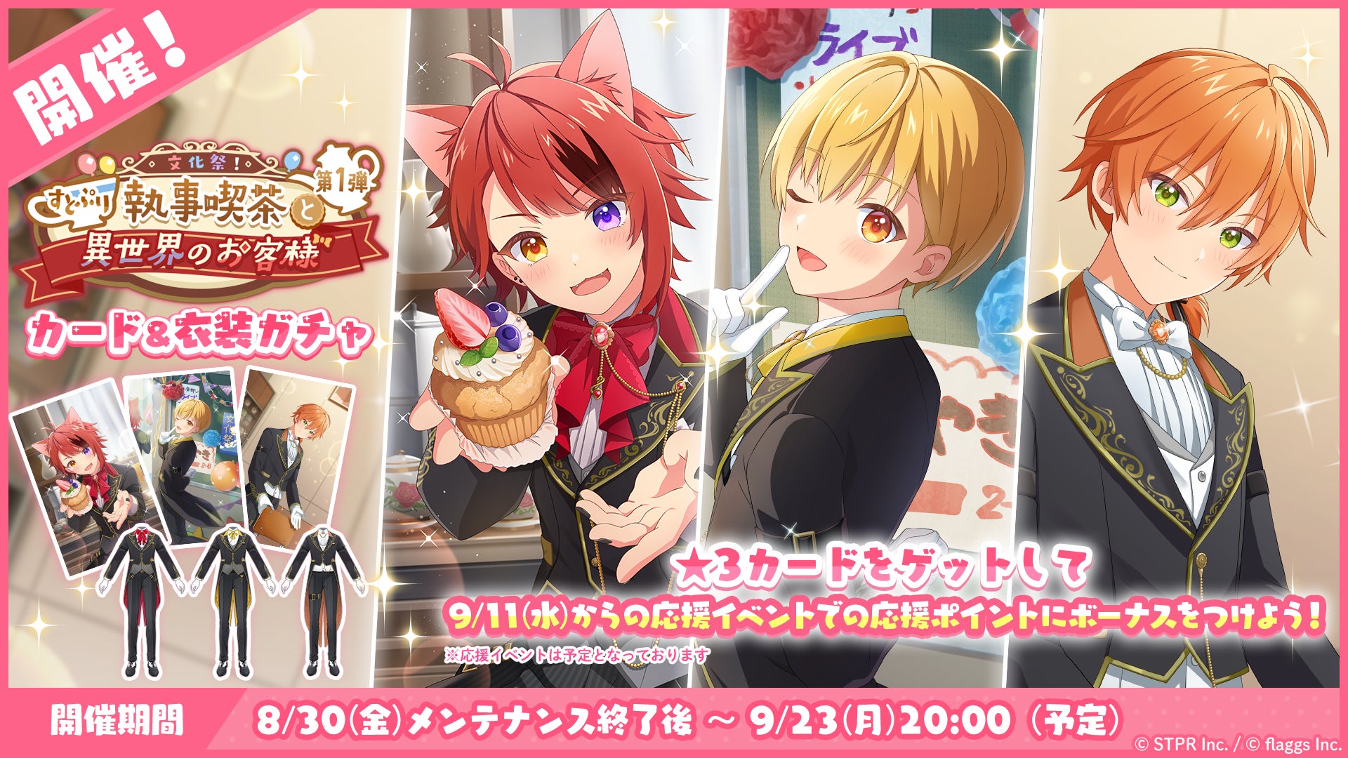 本日8月30日(金)より、9月のゲーム内イベント「文化祭!すとぷり執事喫茶と異世界のお客様」が開催中です。