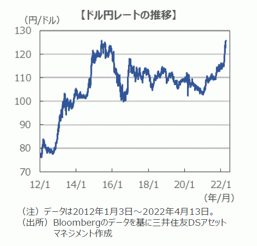 ■円安の進行は、主に内外の金融政策の方向性の違いから来ています。例えば米欧では、景気の好調さに加えて、歴史的な高水準で『インフレ』が続いていることから、米連邦準備制度理事会(FRB)は量的緩和の縮小を迅速に進め、直近3月からは利上げを開始しました。欧州中央銀行(ECB)も量的緩和の縮小と終了の目途を示しており、年後半にも利上げに転じると見られています。一方日銀は、大規模な金融緩和を継続する姿勢を示しています。日銀は2%の「物価安定の目標」を掲げており、足元で消費者物価指数は上昇しているものの、日銀のこの目標にはまだ至らず、当面は現在の金融緩和が継続される見込みです。