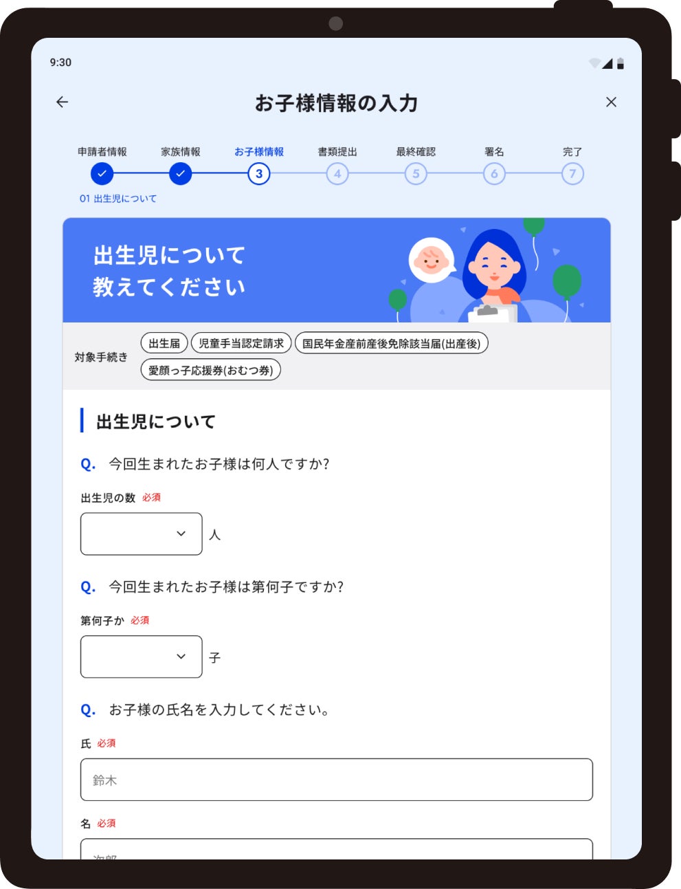 ミラボ、愛媛県 西条市で自治体窓口DXサービス「mila-e 申請」の提供を開始! 「出生届」等、出生時に必要な6件の手続きをまとめて1回、タブレット入力で簡単に
