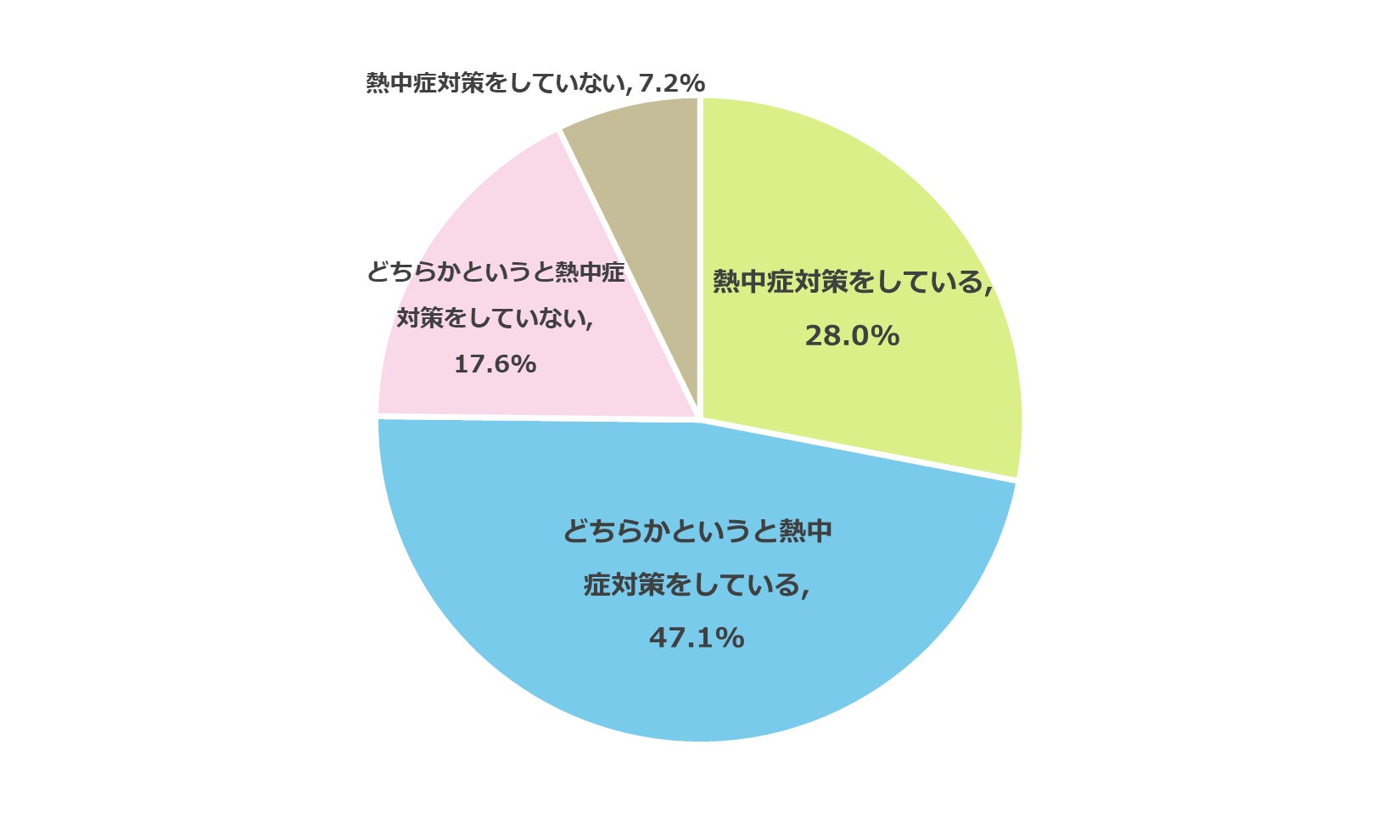 夏季期間中、熱中症対策をしているか質問したところ、75.1%が「熱中症対策をしている」(熱中症対策をしている:28.0%、どちらかというと熱中症対策をしている:47.1%)と回答しました。