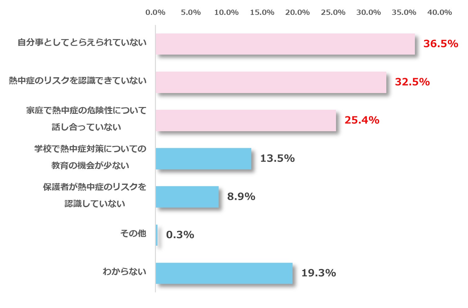 ・熱中症に対して子どもの危機意識が低い原因、最多回答は「自分事としてとらえられていない」