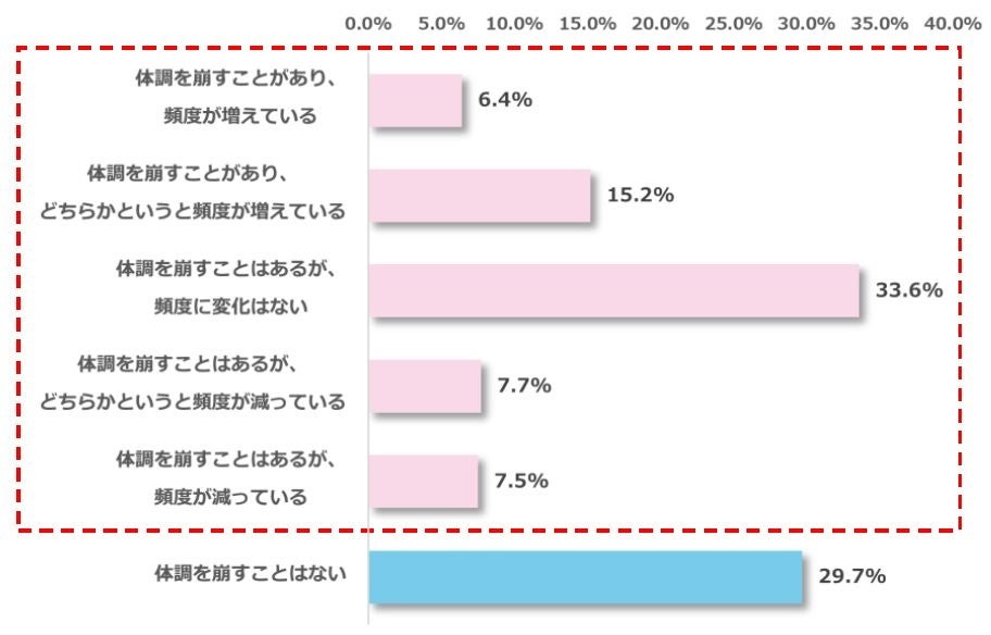2割以上の子どもが夏の暑さによる体調不良の頻度が増えている