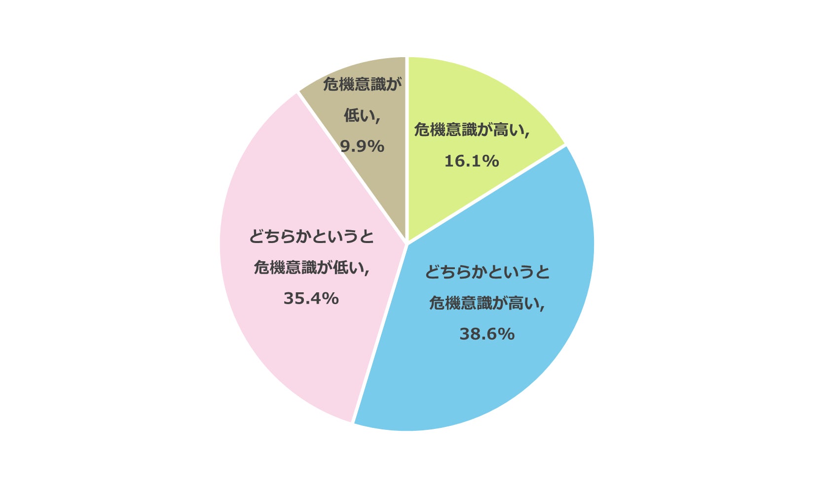 小学4年生から中学3年生の子どもを持つ全国の保護者870名を対象に、熱中症に対する子どもの危機意識について質問をしたところ、54.7%が「危機意識が高い」(危機意識が高い:16.1%、どちらかというと危機意識が高い:38.6%)と回答。また、45.3%が「危機意識が低い」(危機意識が低い:9.9%、どちらかというと危機意識が低い:35.4%)と回答しました。