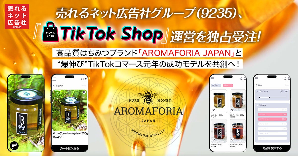 売れるネット広告社グループ(9235)、高品質はちみつブランド「AROMAFORIA JAPAN」の『TikTok Shop』運営を独占受注!“爆伸び”TikTokコマース元年の成功モデルを共創へ!