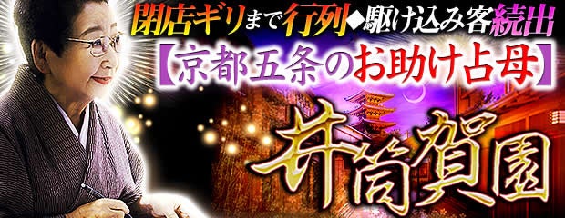 【閉店ギリギリまで行列長蛇&駆け込み客続出】メディア不出なのに当たる噂が全国で拡散◆京都五条の名物占い師として桁違いの人気と実力を誇る“お助け占母”井筒賀園。愛/人生/仕事/財を始め一生に寄り添った親身かつ現実的な鑑定であなたの複雑な悩みに答えを下します。