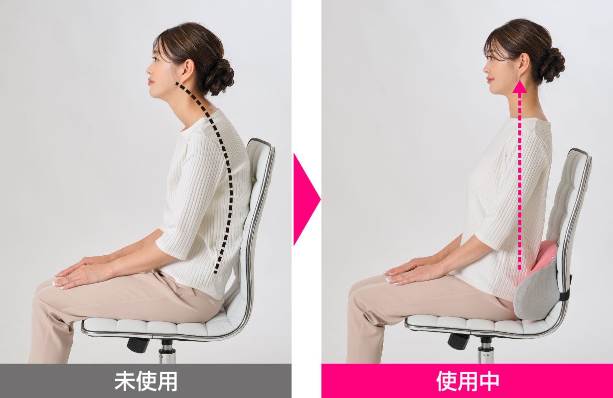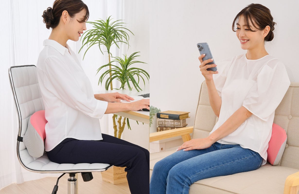 また、「腰ほぐしボールクッション」を使用することで、本来の自然な座り姿勢を意識できるようにサポートします!