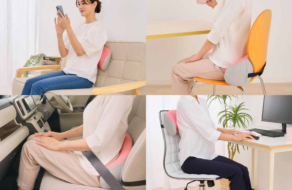 毎日のデスクワークや長時間のドライブ、リラックスタイムなど、様々なシーンで大活躍!「腰ほぐしボールクッション」で、いつも体を支えてくれている腰をいたわりながら、気持ち良いを実感してみてください♪
