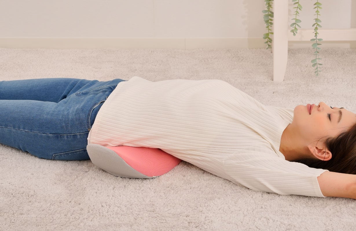 背中付近に置いてもたれることで、肩甲骨まわりの筋肉にもアプローチ!