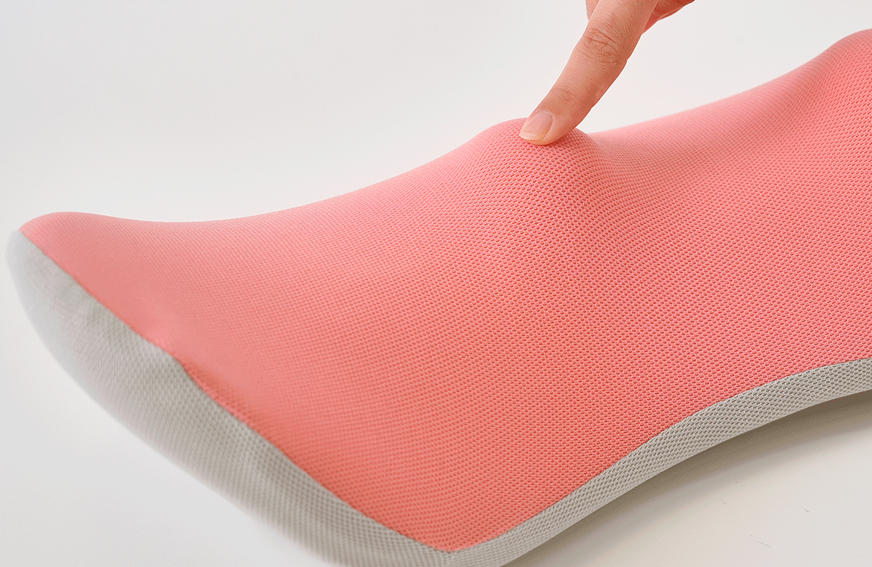 やわらかいクッション材に、人間工学に基づく3D形状。さらにフィット感を追求するために、どんな形状でも対応できる伸縮性に優れた生地を採用しました!