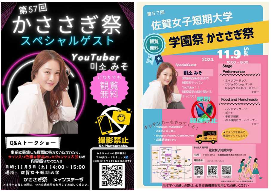 韓国文化に精通し、すべてのコースで韓国留学の機会を提供している佐賀女子短期大学の学園祭「かささぎ祭」に、みそがスペシャルゲストとして出演いたします。
