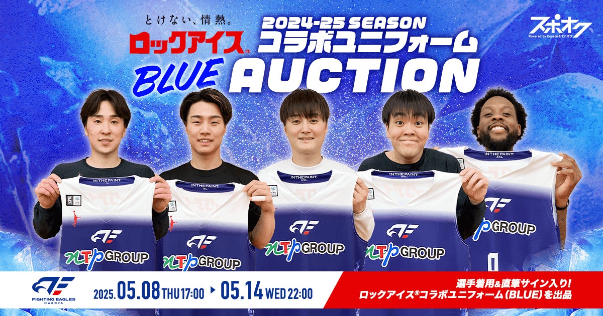 株式会社モバオク(本社:東京都渋谷区、代表取締役社長:生田目 知之、以下モバオク)がエンゲート株式会社(本社:東京都中央区、代表取締役:城⼾ 幸⼀郎、以下エンゲート)と業務提携し提供するスポーツチーム公式オークションサービス「スポオク」にて、B.LEAGUE所属のファイティングイーグルス名古屋が実施する『FE名古屋 2024-25 SEASON ロックアイス® コラボユニフォームオークション』を2025年5月1日(木)から開始します。
