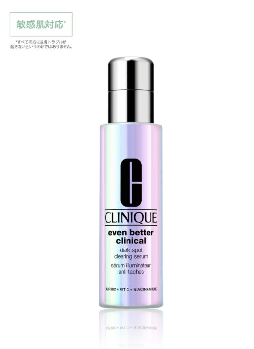 皮膚科学発想で挑む「イーブン ベター」のブライトニング美容液。クリニーク独自のブライトニング成分「UP302*1」 やナイアシンアミド*2と2種のビタミン C*3を配合。各成分が角質層に浸透し、肌にごりができるあらゆる経路に立ちはだかりブロック。