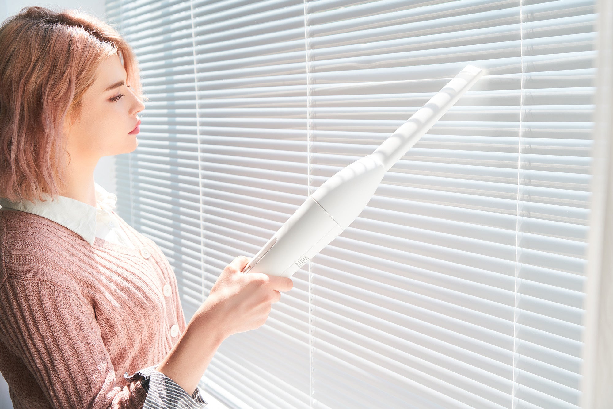 微粒子も逃さない16,900Paの吸引力、550gで軽量、オブジェのように美しい佇まい