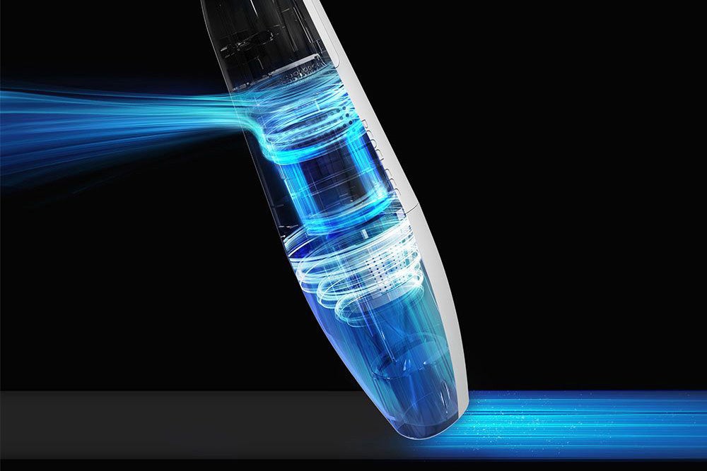 当製品は製造メーカーが過去製品で培ってきたノウハウを応用した「ブラシレスDCモーター++」を搭載しました。1分間に76,000回転するモーターが強力な吸引力を生み出します。微粒子から髪の毛など逃さず吸引します。