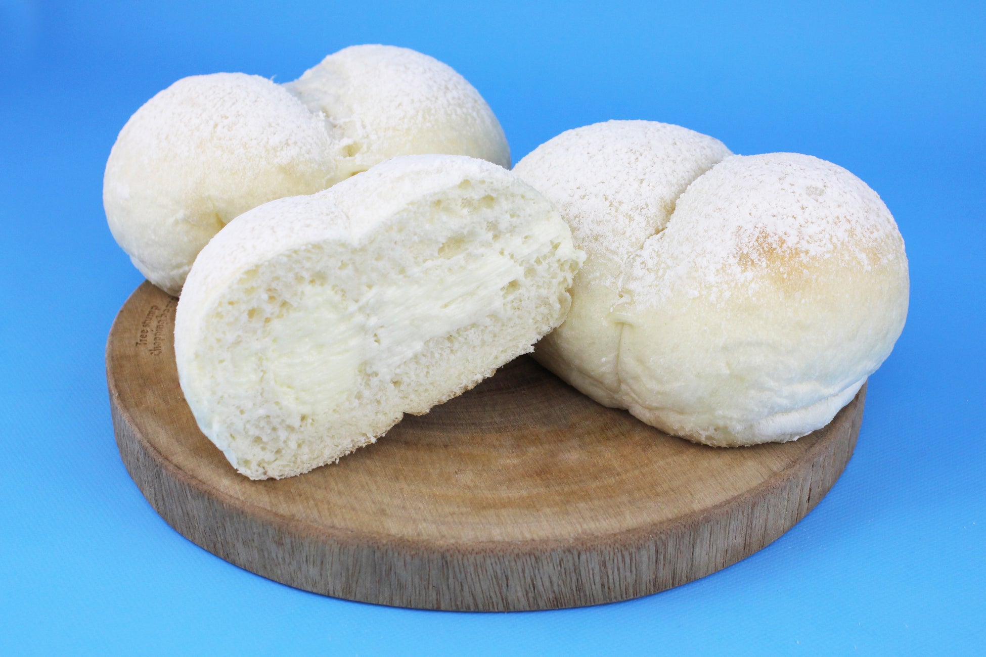 北海道産小麦を使用し、湯種を練り込んだもっちりふわふわなパンに、北海道産練乳のミルククリームを注入しました。真っ白いふわふわの生地と甘いミルククリームは相性抜群。食後のデザートにもぴったりです。