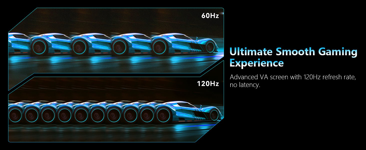 ディスプレイのリフレッシュレートは最大120Hzを確保。(DisplayPort利用時のみ)ゲーミング用途であっても、遅延の少ない映像によって、スムーズなゲーミングを実現。また、日常的に利用する上でも、目の負荷を抑えて使い続けられます。