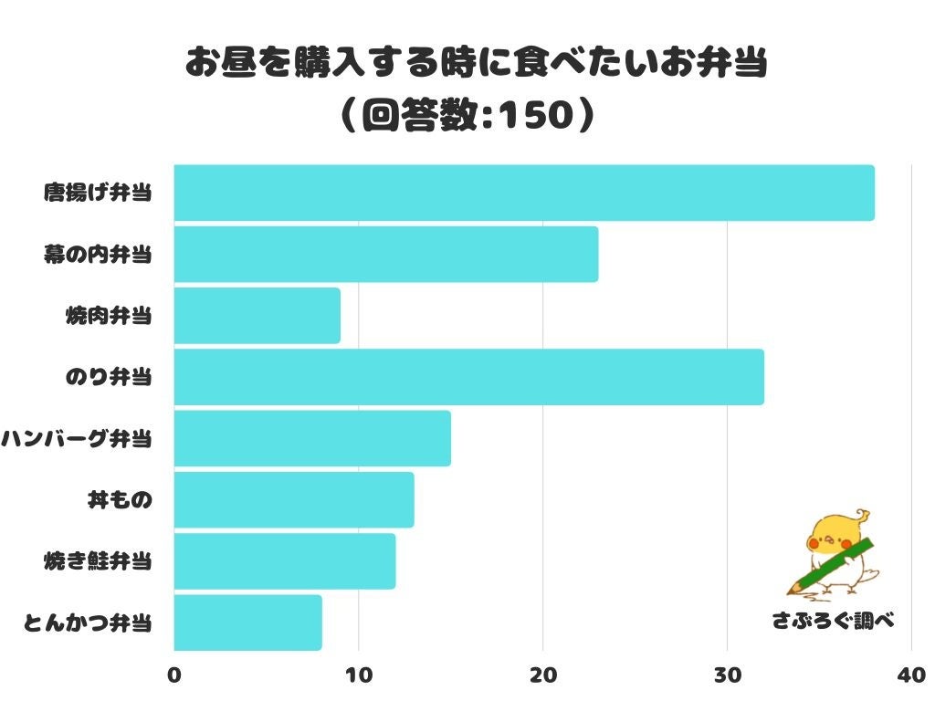 株式会社レビュー(https://jafmate.co.jp/)が運営する暮らしに役立つ情報メディア「さぶろぐ」( https://sublogg.com/ )は、日本全国の10歳以上の方を対象に「お昼を購入する時に食べたいお弁当」についてのアンケート調査を実施しました。