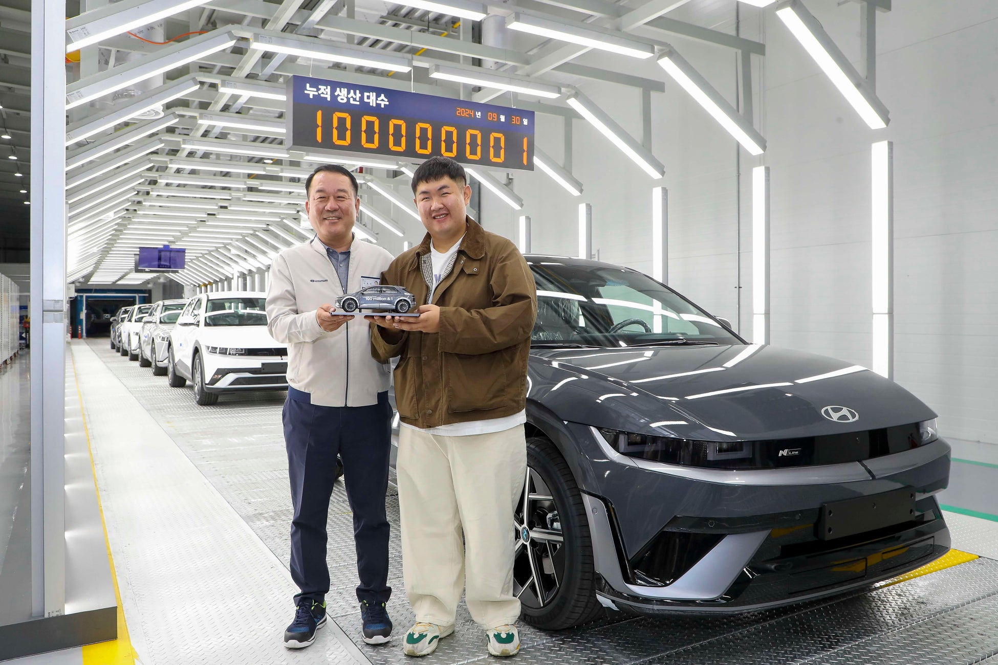 ソウル、2024年9月30日発表 – Hyundai Motor Companyにとって本日は、全世界における累計生産台数が1億台に達するという重要な節目となりました。創業からわずか57年での達成は、世界の自動車企業の中でも屈指の速さです。これを記念して、Hyundai Motorは韓国の蔚山工場で式典を開催しました。