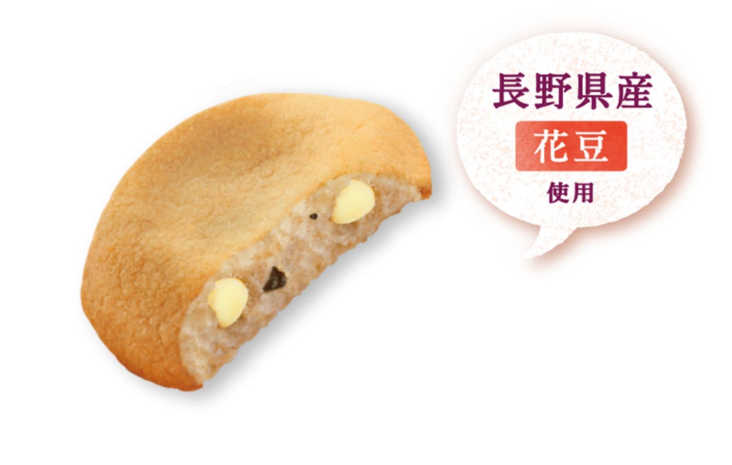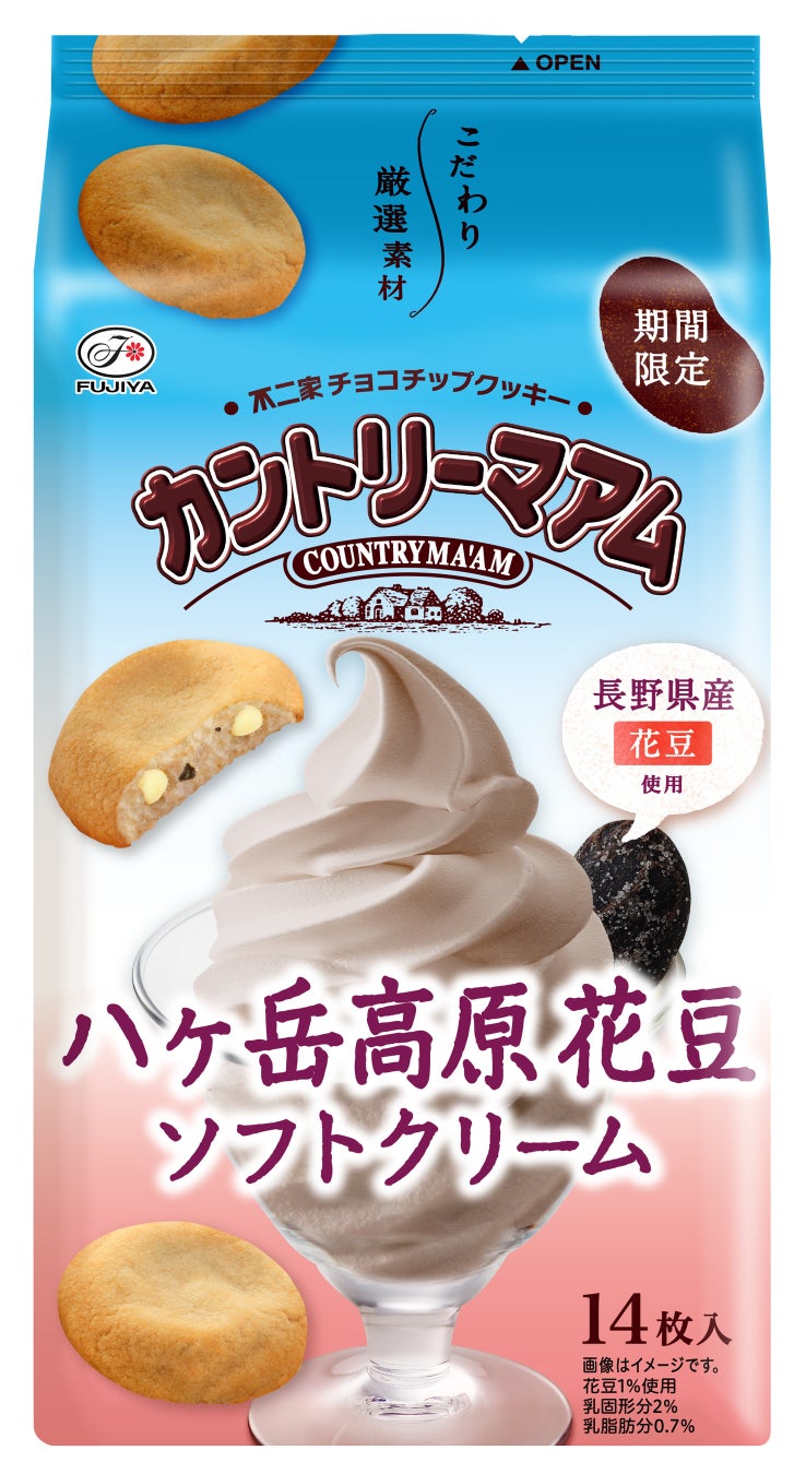 ・長野県の特産品である花豆を使用した花豆あんと、ミルクを生地に練り込み、ホワイトチョコチップを合わせて焼き上げた、花豆ソフトクリームをイメージしたカントリーマアム