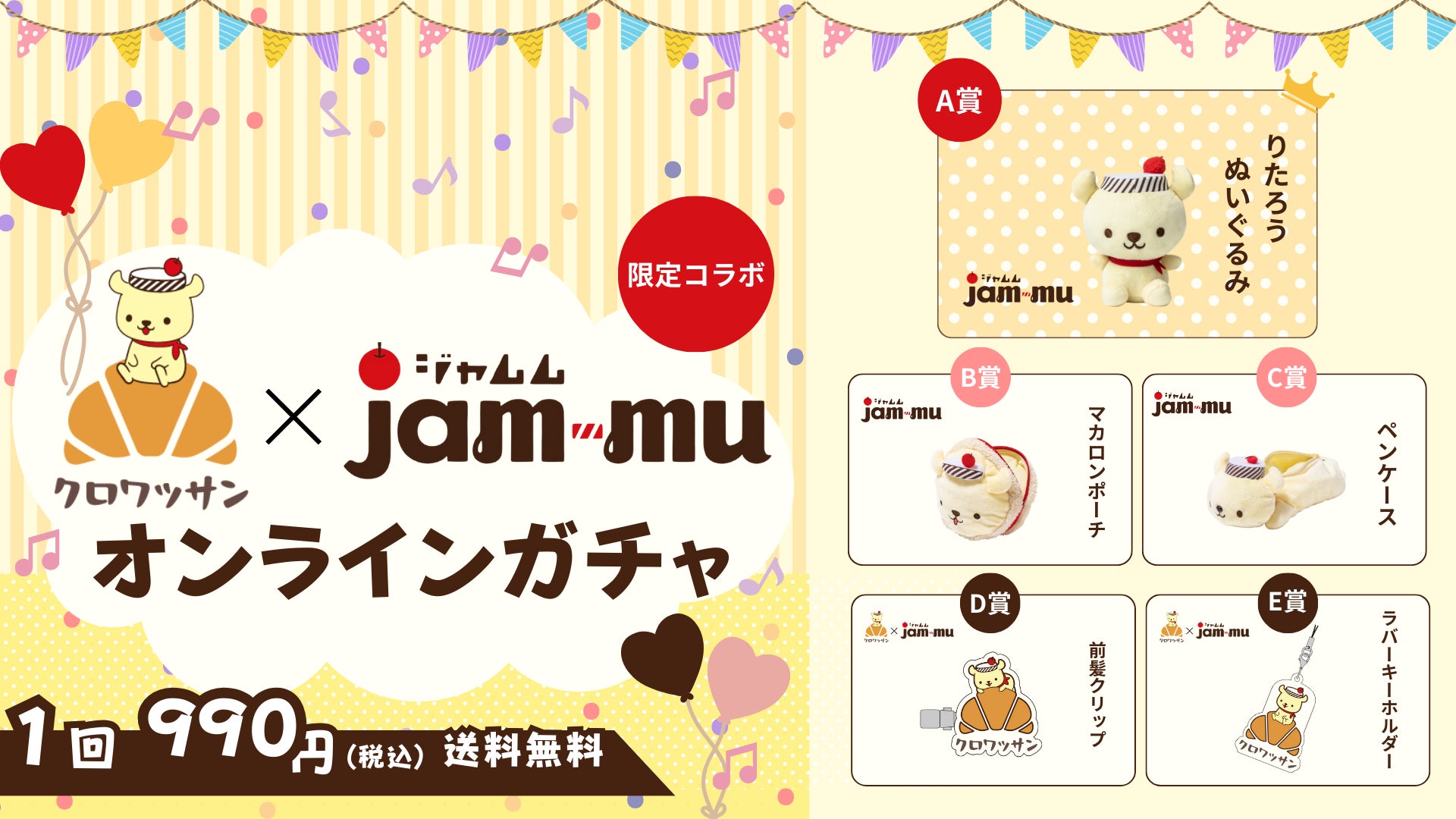 本ガチャで当たるのは、「ジャムム×クロワッサン」コラボによる描き下ろしデザインの完全オリジナルグッズ。可愛らしさと実用性を兼ね備えたラインナップとなっています。