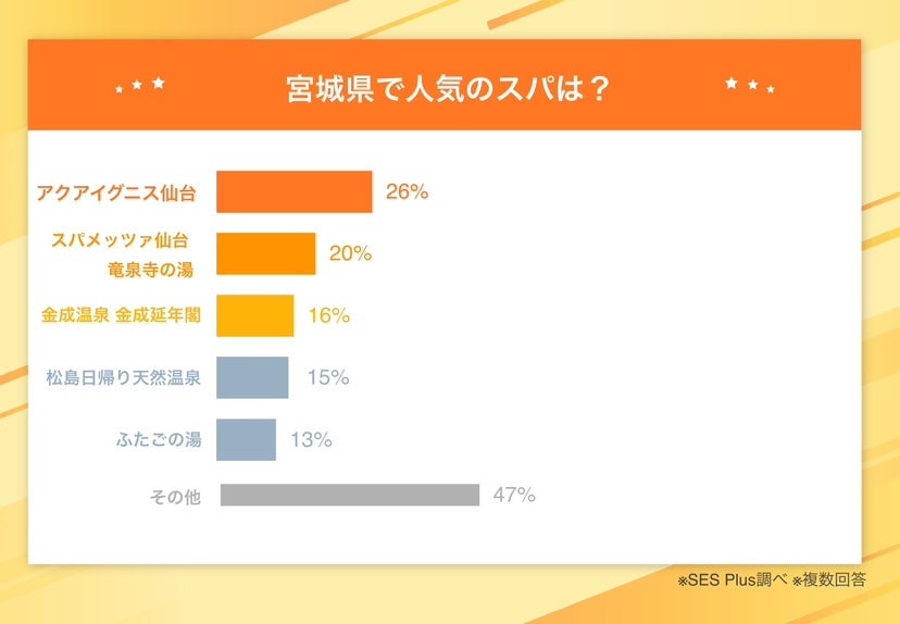 宮城県内・県外の宮城県ファン"男女約250人"を対象に「宮城県で人気のスパは?」の人気アンケート調査を実施!