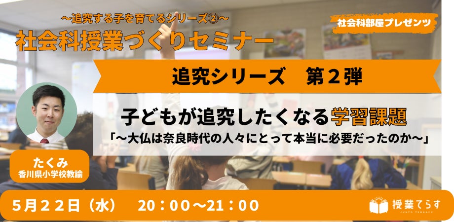子どもに社会科授業を楽しんでほしい先生のためのセミナーです。