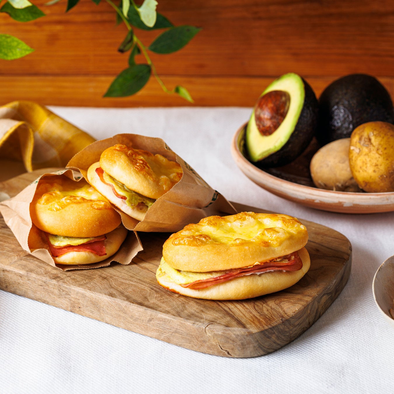 アボカドポテトフィリング・ボンレスハム・チーズフィリングをもっちり食感のパンでサンドした、食べ応えのある惣菜パンです。