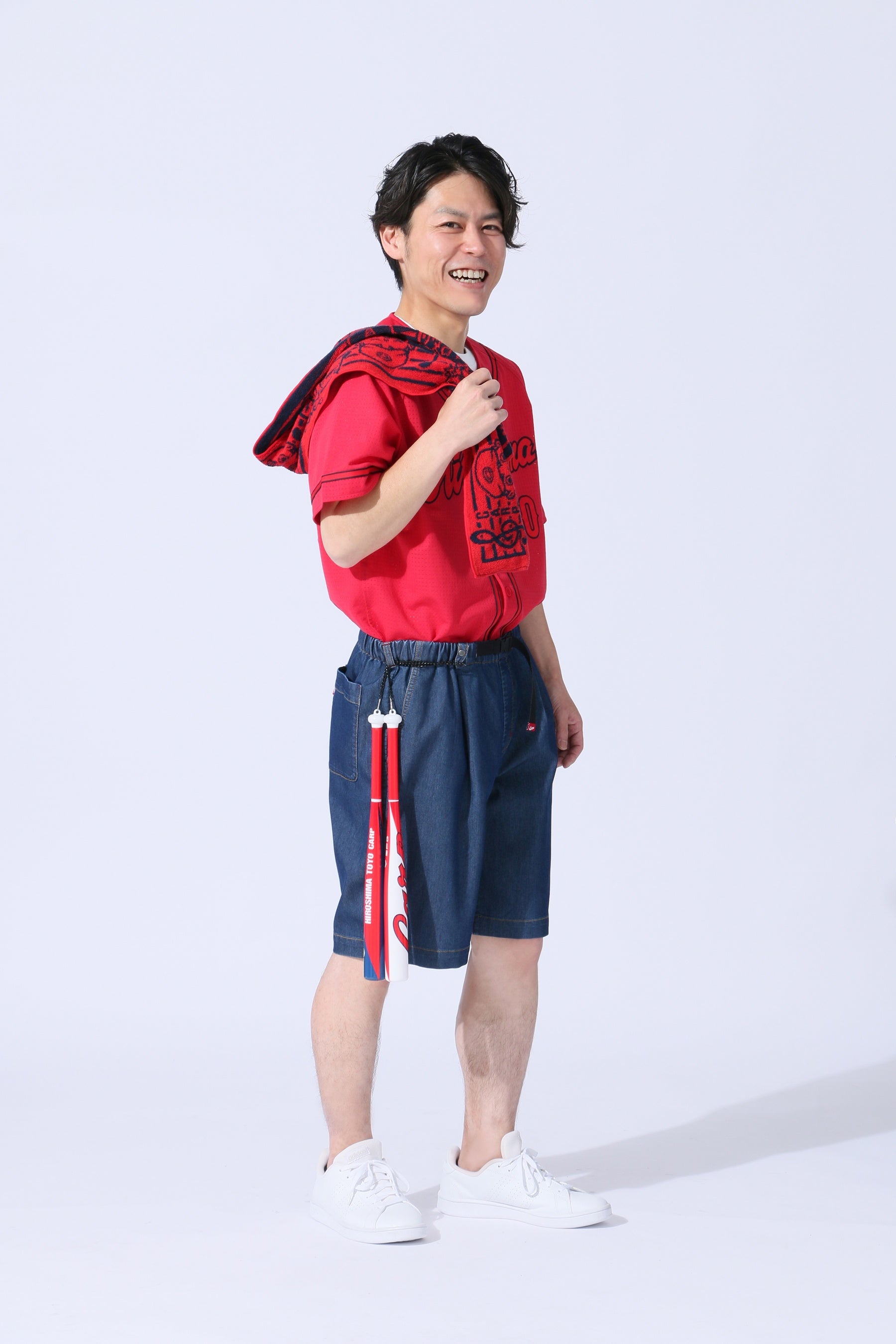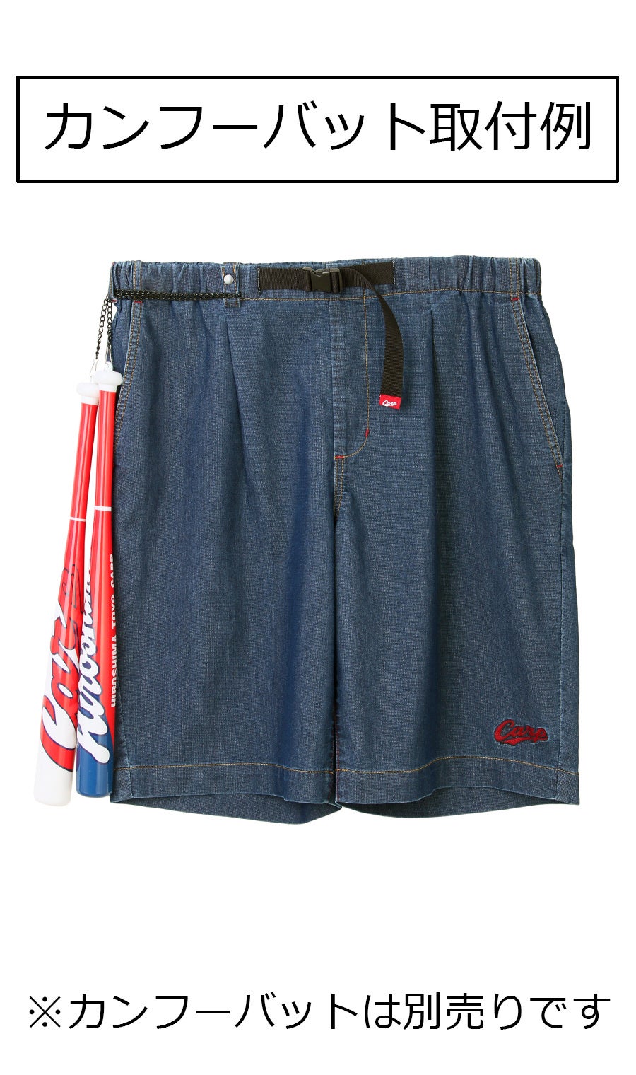 もうすぐ暑い夏…暑くても熱い応援をしたいカープファンに、広島県産のドライタッチデニムを使ったショートパンツをお届けします。カンフーバットをぶら下げるためだけに付けたループとタグがこだわりポイントです。