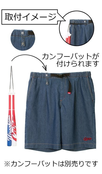 ペナント後半戦もオール広島でぶち応援じゃ!広島東洋カープ応援用デニム第2弾 カンフーバットもぶら下げられる「デニムショートパンツ」数量限定発売決定
